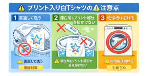 漂白剤はプリント部分を避ける